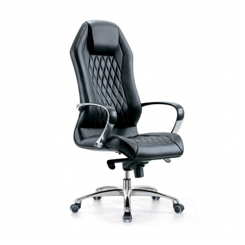 Кресло руководителя Aura черный кожа крестовина алюминий / Офисное кресло для директора, начальника, менеджера
