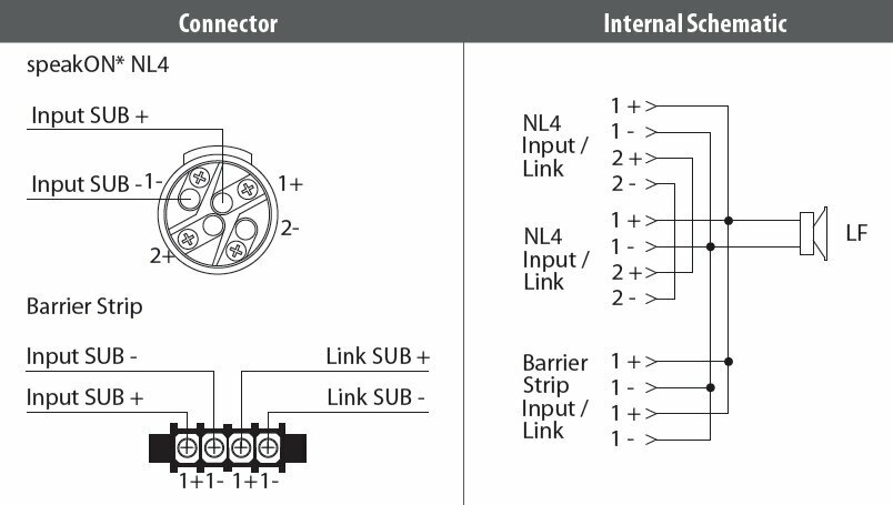 | Выходы | Speakon / высокоуровневый (клеммы) |