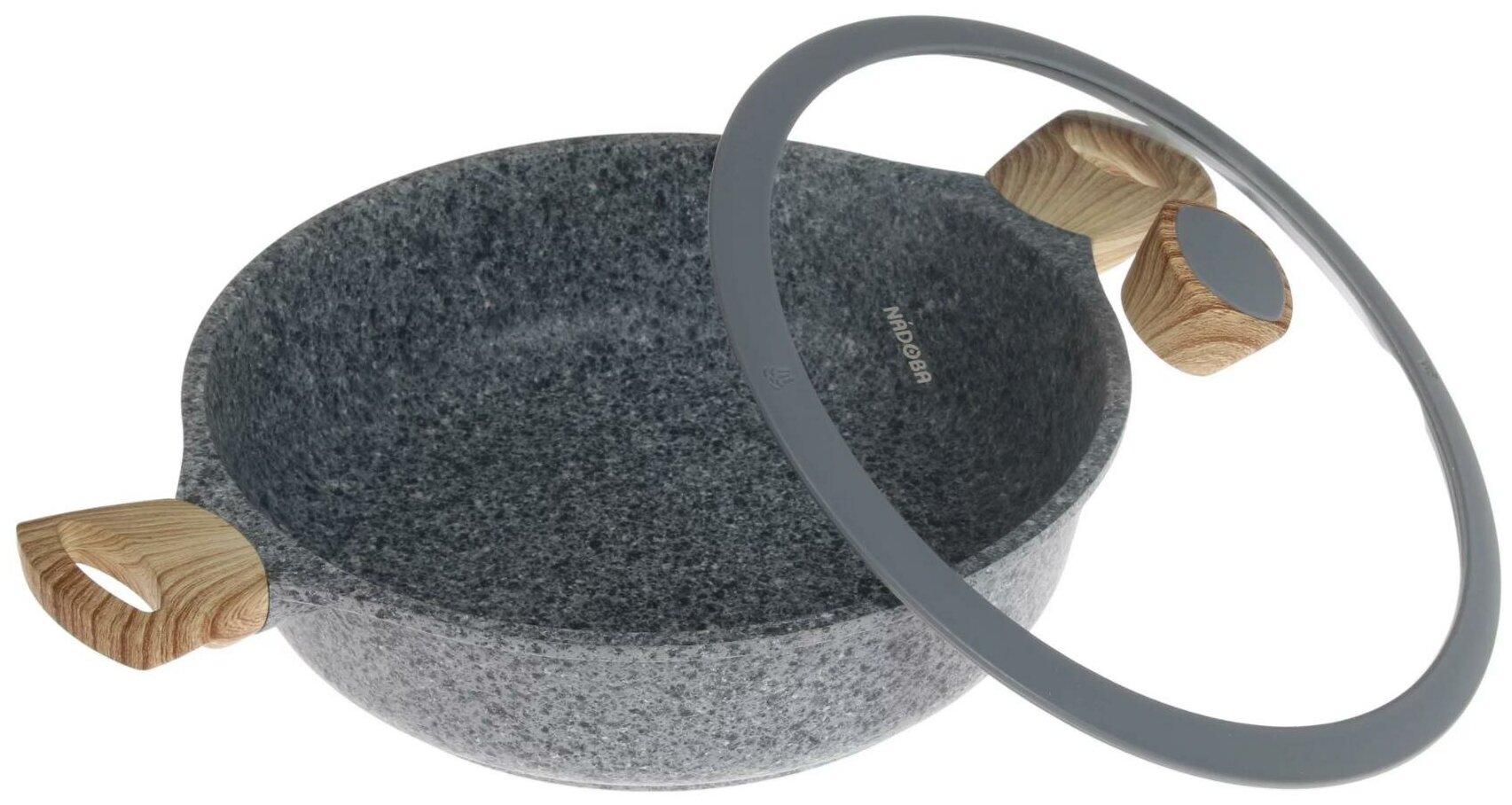 Лучшие цены. Сотейник с антипригарным покрытием и с крышкой, 28 см, NADOBA Серия: MINERALICA Диаметр: 28 см Диаметр дна: 22,5 см Материал: Литой алюминий, индукционное дно из нержавеющей стали. Материал ручки: Бакелит с покрытием «Софт-тач» Толщина дна: 5 мм Высота: 8 см Внутреннее покрытие: Pfluon – Продукция серии Mineralica изготовлена из литого алюминия с использованием особо прочного 5-слойного антипригарного покрытия Pfluon на основе структуры гранита с прекрасными антипригарными свойствами, прочностью и. Магазины в вашем городе.