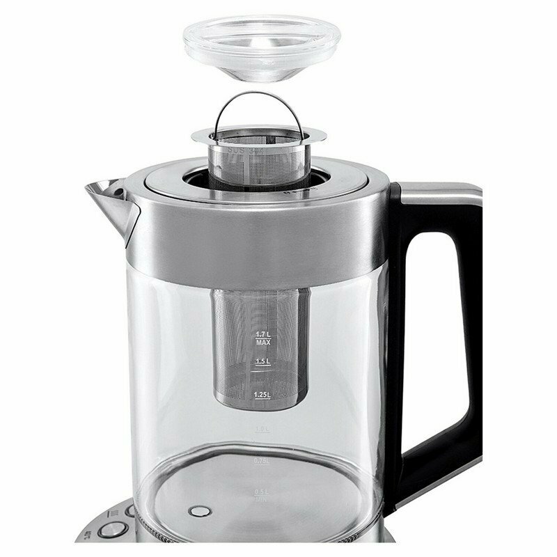 Чайник KITFORT КТ-622, 1,7 л, 2200 Вт, закрытый нагревательный элемент, терморегулятор, заварник, стекло, серебро - 1 шт.