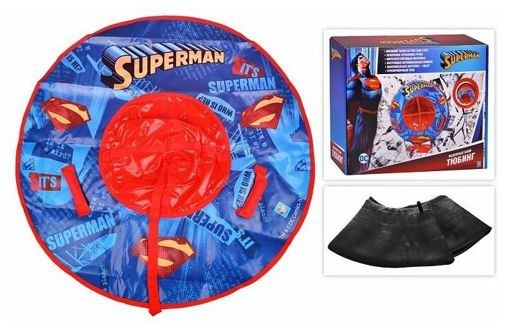 1toy Супермен тюбинг - надувные сани,резин.автокамера, материал глянцевый пвх 500 гр/кв.м.,85см,букс.трос,цветн.кор.