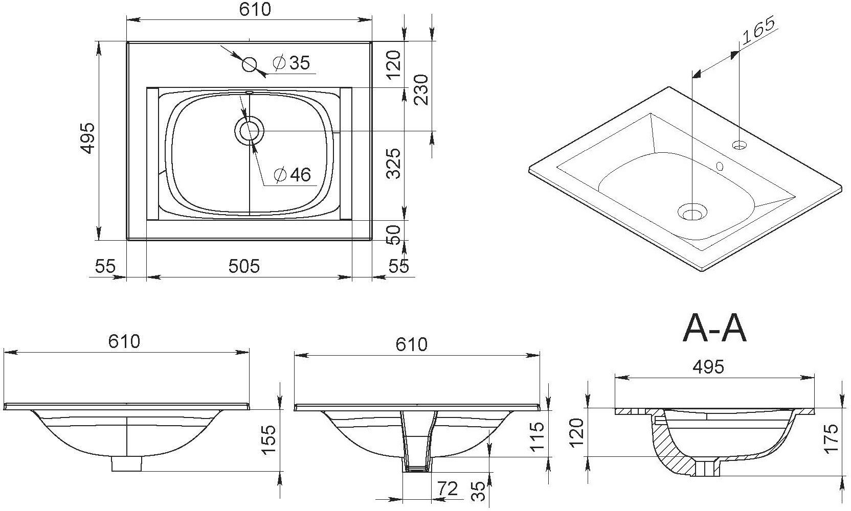 Лучшие цены. Прямоугольная раковина AM.PM Spirit V2.0 61 M70AWCC0602WG. Технические данные: В комплекте поставки. Магазины в вашем городе.