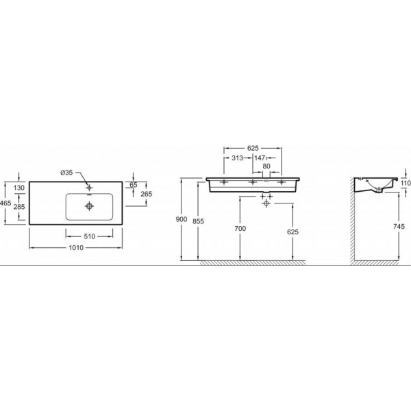 Умывальник Подвесная раковина-столешница Jacob Delafon Vox 100 х 46 (правая) EXAD112-Z-00