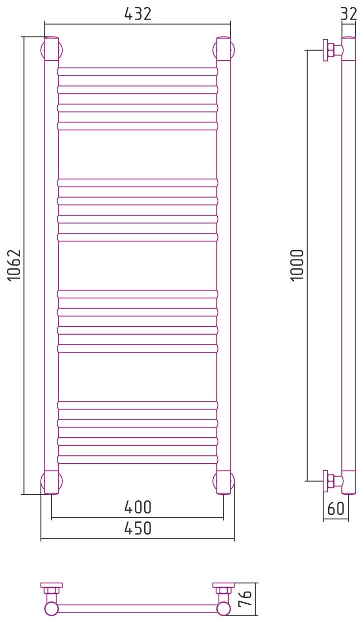 Водяной полотенцесушитель Сунержа Богема+ (прямая) 1000x400 темный титан муар арт. 15-0220-1040