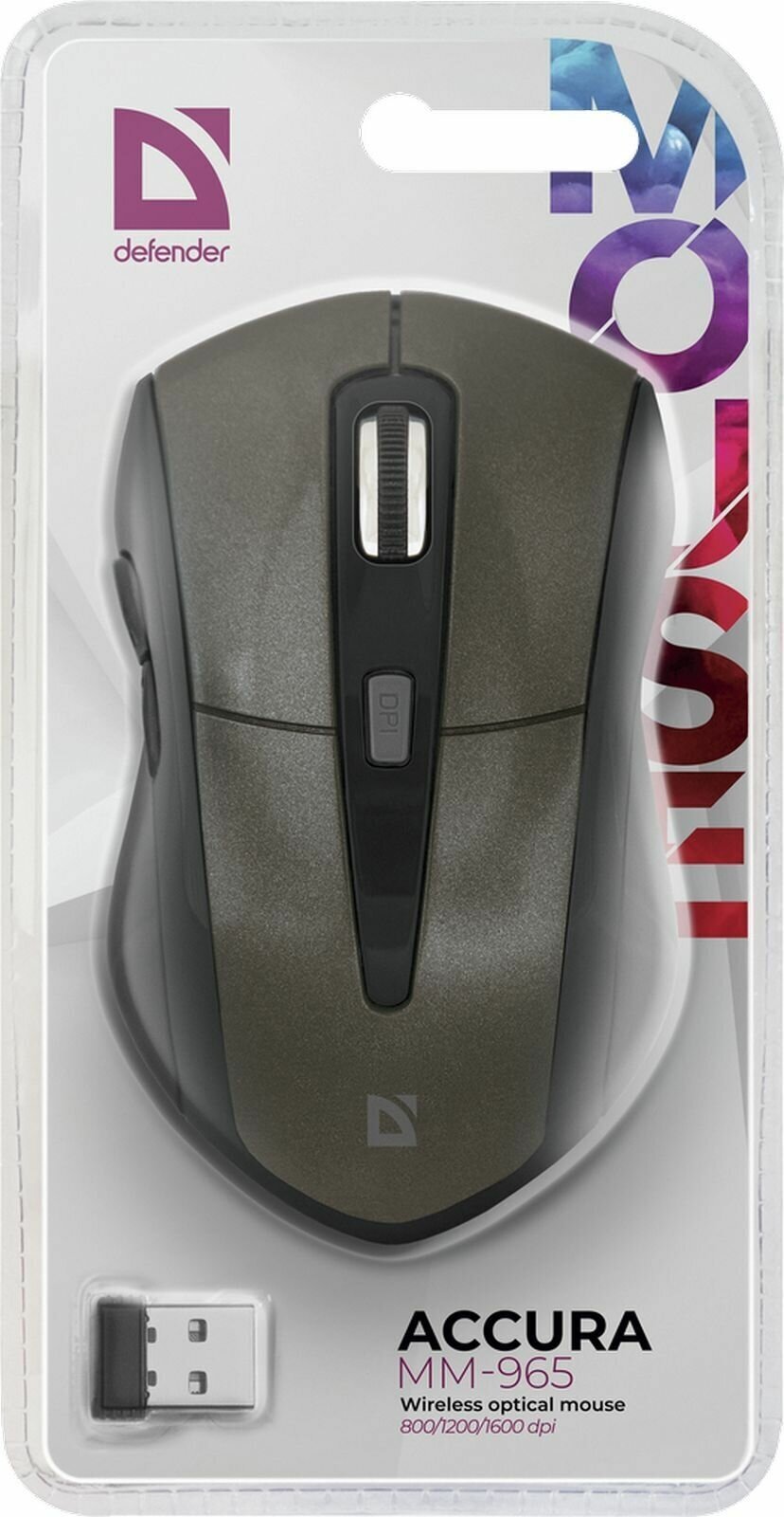 Беспроводная оптическая мышь Defender Accura MM-965 серо-коричневая (2.4 ГГц, 6 кнопок,1600 dpi, 2 х АAA)