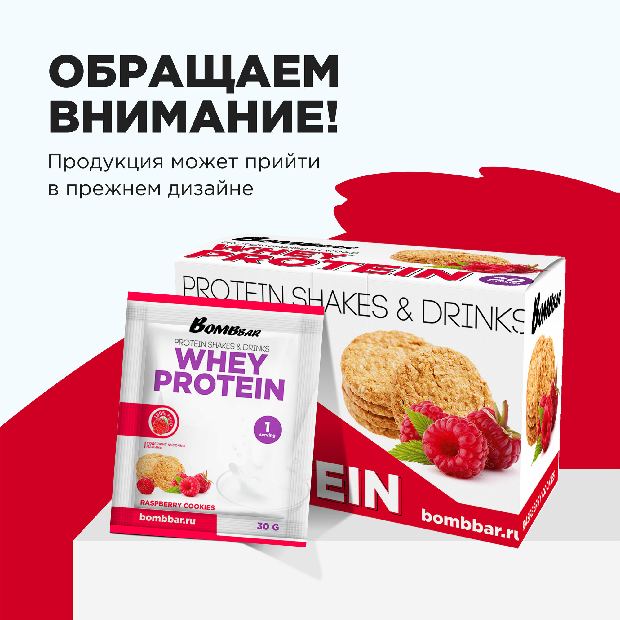 Протеин Протеиновый коктейль Bombbar порционный без сахара "Малиновое печенье", 20шт х 30г