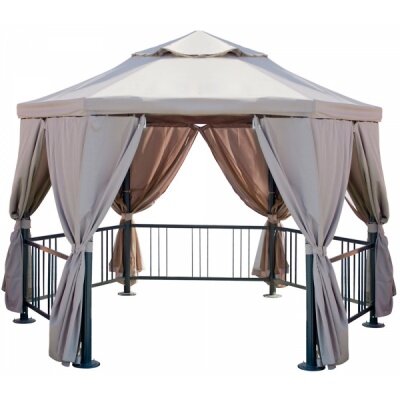 Садовый тент-шатер Green Glade 1080 10.4 м2 с перилами и москитной сеткой, бежевый / дачный тент Грин Глэйд 1080 м для отдыха на природе / беседка для сада и дачи / для кафе / для кемпинга / для бассейна / для мероприятий / торговый павильон