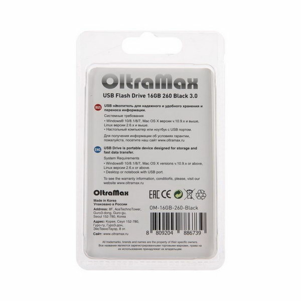 OLTRAMAX 8809204886777 OLTRAMAX OM-64GB-260-Black 3.0 черный флэш-накопитель