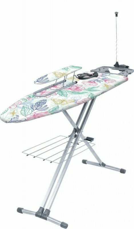 | Функции и возможности | подставка для утюга, регулировка высоты, подрукавник, полка для белья, держатель для вешалок, встроенная розетка, держатель провода |