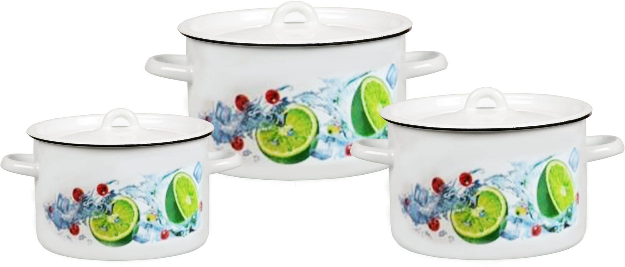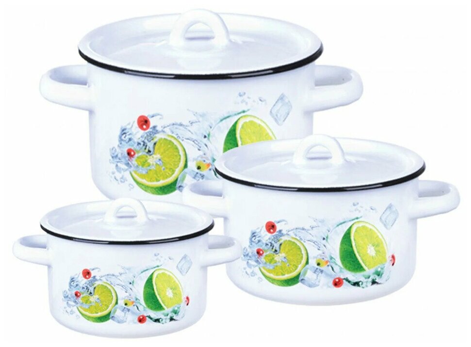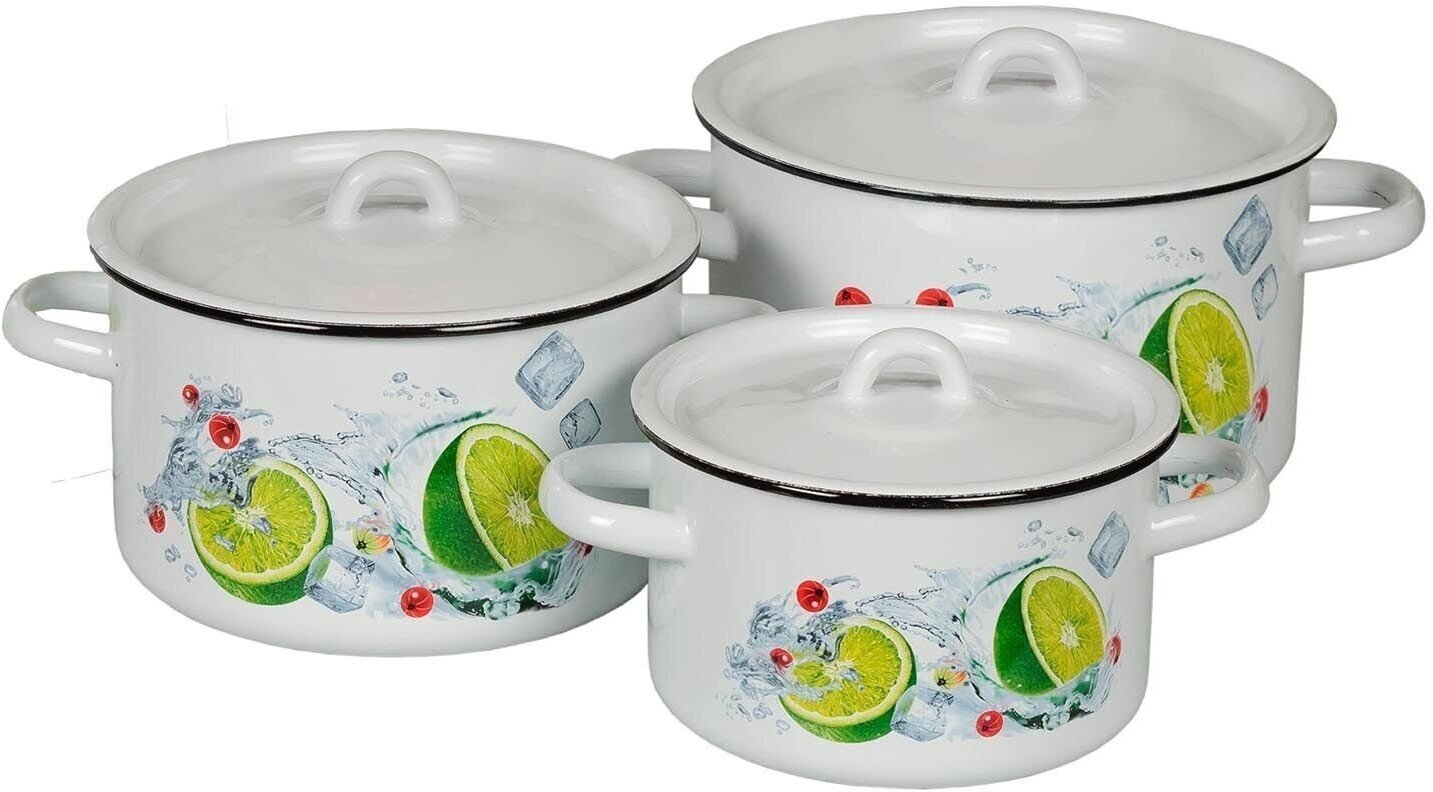 Набор эмалированных кастрюль 33 мохито белоснежный (1,5+2,9+4,5л), Череповец.