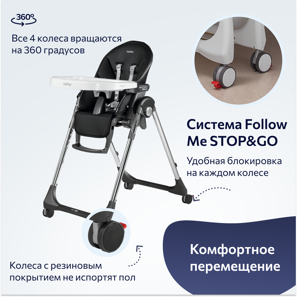 Стульчик для кормления Peg-Perego Prima Pappa Follow Me Hi-Tech Licorice (эко кожа) 21 690 ₽ Подробнее