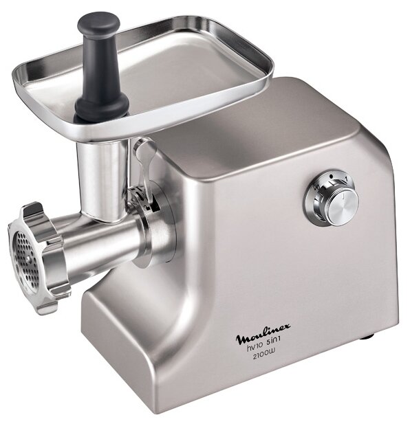 Мясорубка Moulinex HV10 ME856D32 с реверсом, 2100 Вт, 5.5 кг/мин, металлический корпус, 3 решетки, насадка для колбас и кеббе