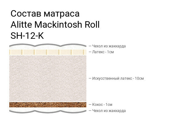 Матрас Alitte Mackintosh Roll SH-12-K 180х200, стандартный 22 364 ₽ Подробнее