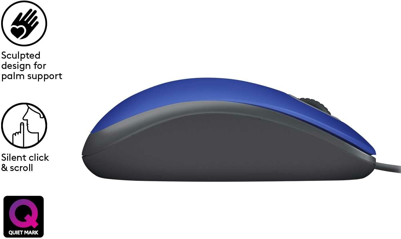 Мышь проводная Logitech M110 Silent, 1000 dpi, USB, синий (910-005488)
