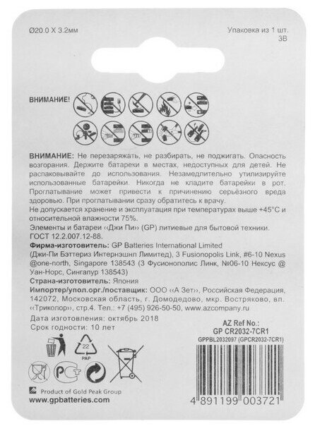 Gp CR2032- 7 C1 1 шт. в уп-ке 08984 12302 03223