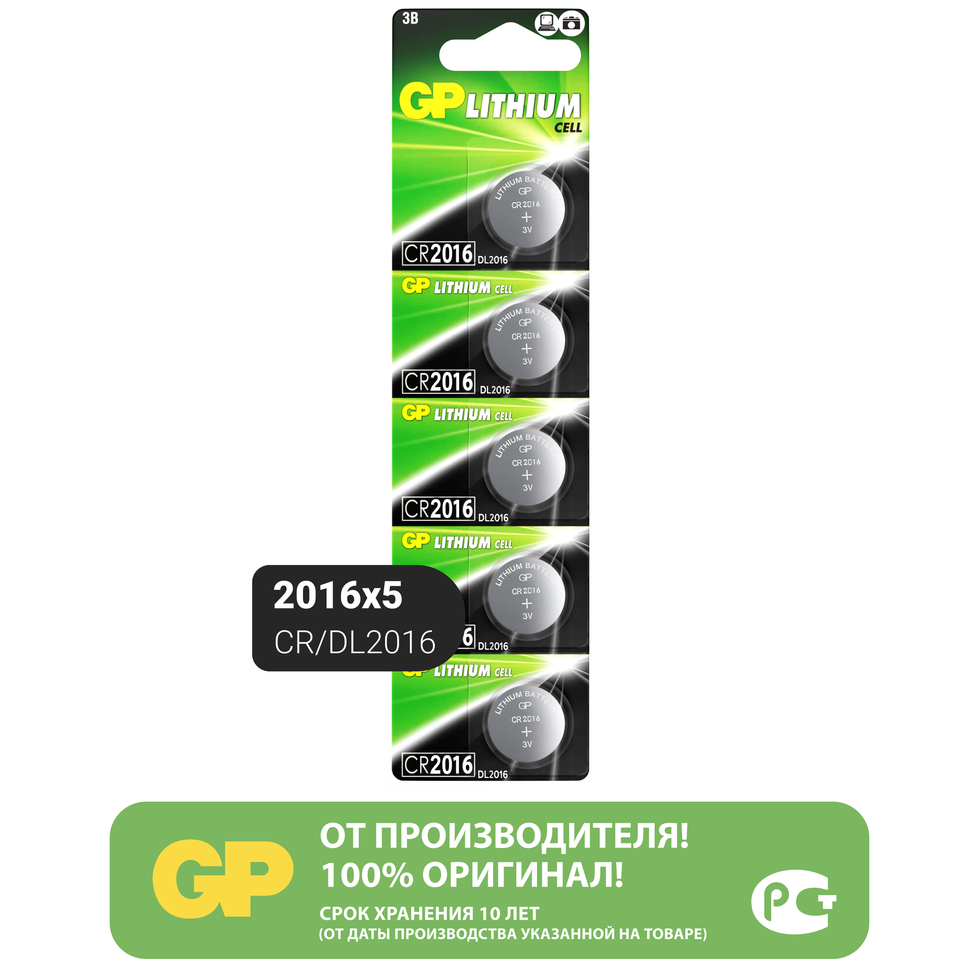 Литиевые дисковые батарейки GP Lithium CR2016 - 5 шт., каждая в своем отрывном блистере