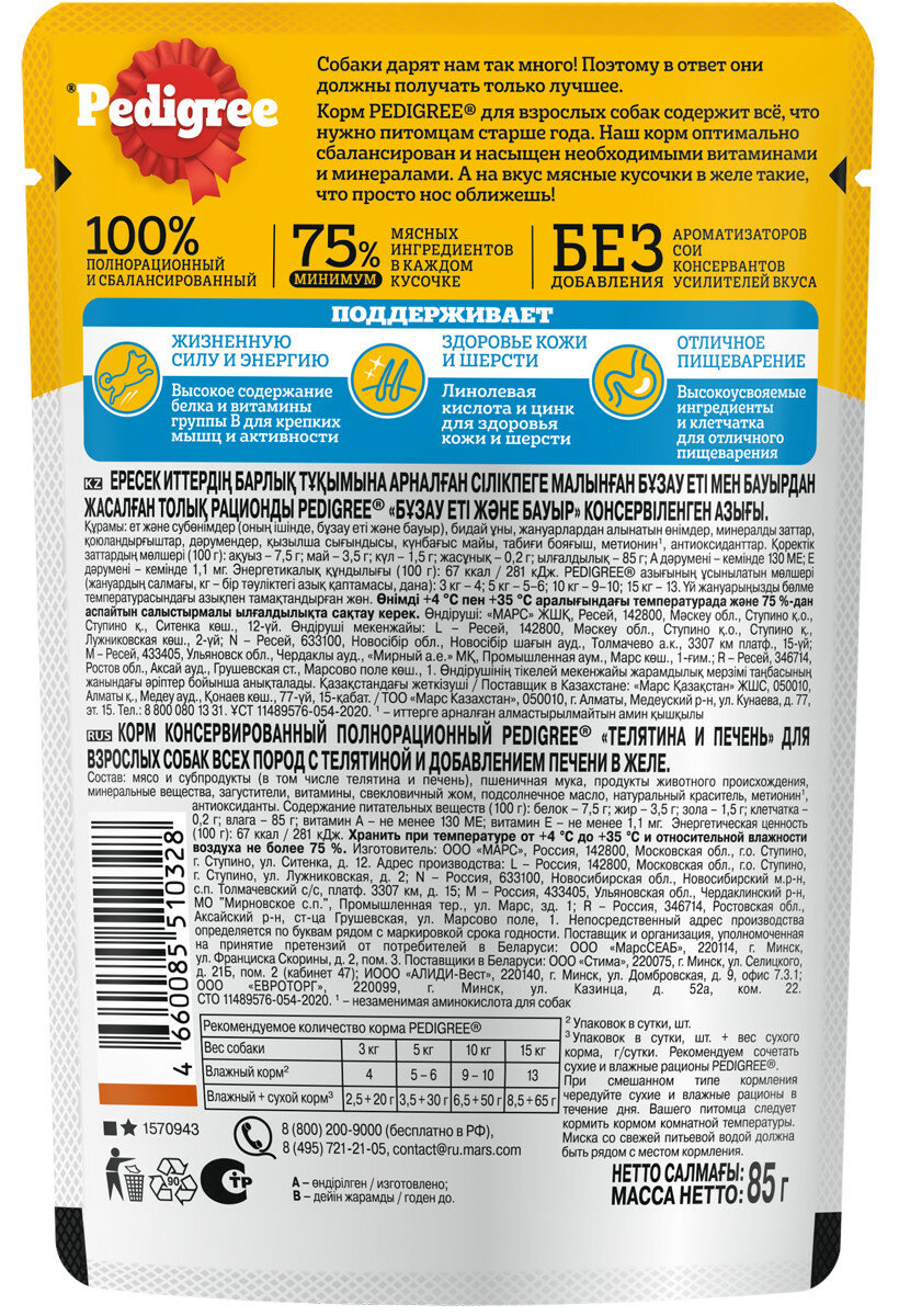 Pedigree Паучи для взрослых собак всех пород с телятиной и печенью в желе 85г 10222593 0,085 кг 43501 (2 шт)