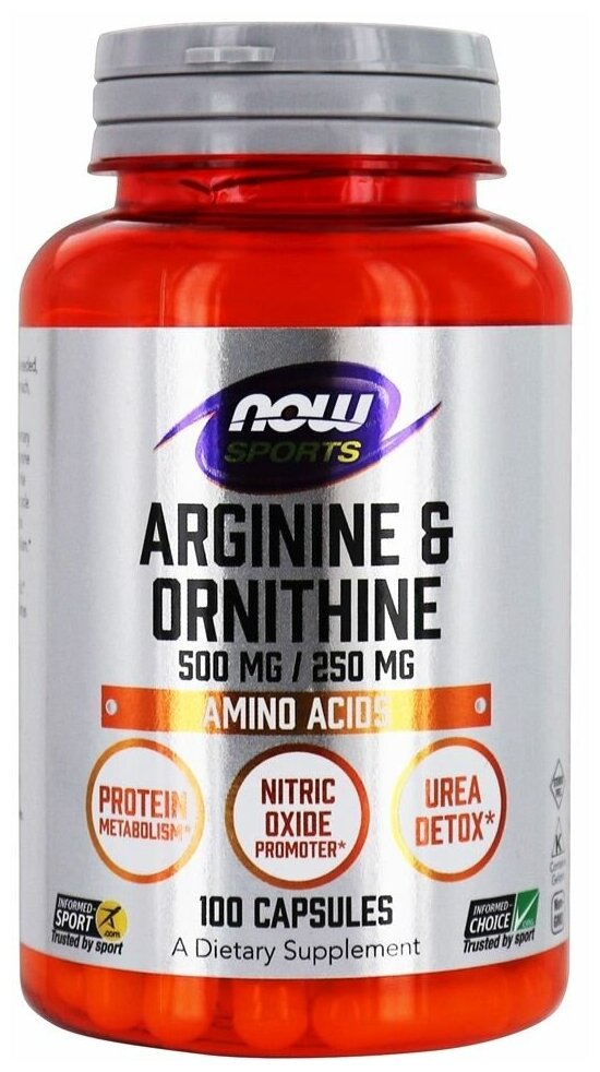 NOW Arginine Ornithine (Аргинин Орнитин) 500/250 мг 100 капсул