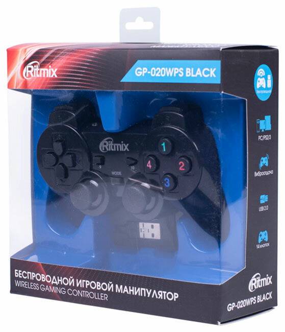 Геймпад беспроводной Ritmix GP -020 WPS совместим с PC. PS3, вибрация, 17 кнопок, радиус 7м, чёрный