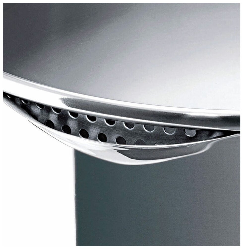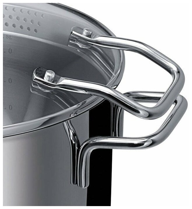 Лучшие цены. Эта кастрюля имеет боковые сливные отверстия разного диаметра. Отверстия большего диаметра позволяют сливать жидкость после варки картофеля и других овощей, отверстия меньшего диаметра предназначены для приготовления риса и макаронных изделий. - Два в одном — готовим и сливаем жидкость без дуршлага. Чтобы сливать было удобнее и безопаснее, крышка оборудована боковыми ручками, совмещаемыми с ручками кастрюли. - Удобство сцеживания — сливные отверстия с двух сторон. Магазины в вашем городе.