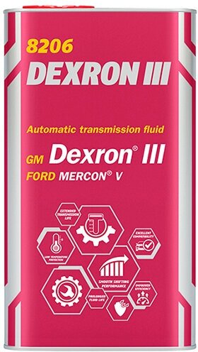 Масло Mannol транс. ATF Dextron-III Automatic Plus 8206 (4 л) GM Dexron III H/G/F; Ford Mercon V; MB 236.1, Allison C4; Volvo 56-66; PSF Applications