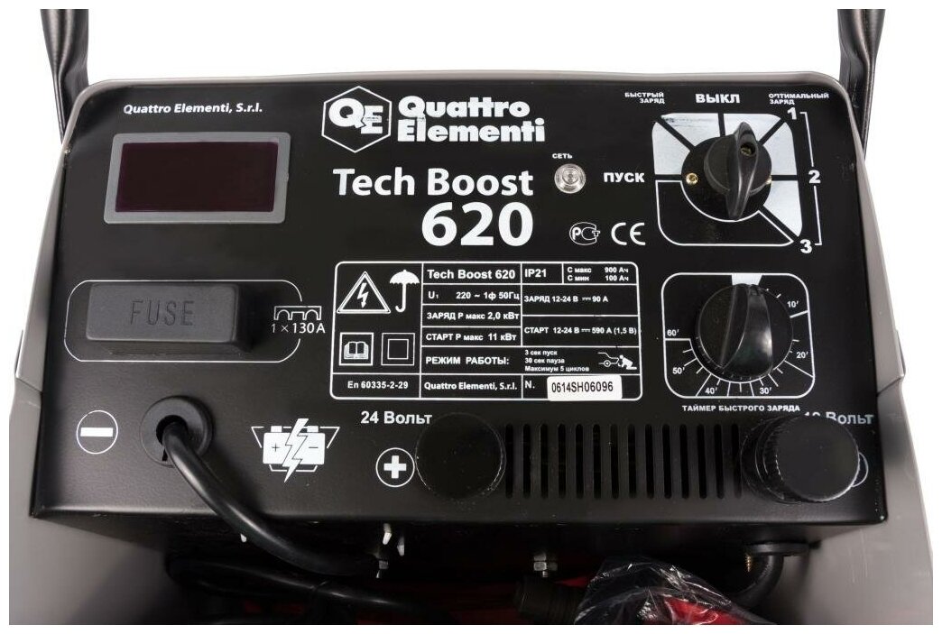 Пуско-зарядное устройство Пуско-зарядное устройство QUATTRO ELEMENTI Tech Boost 620 ( 12 / 24 Вольт, заряд до 90А, пуск до 590 А, таймер, 28 кг)