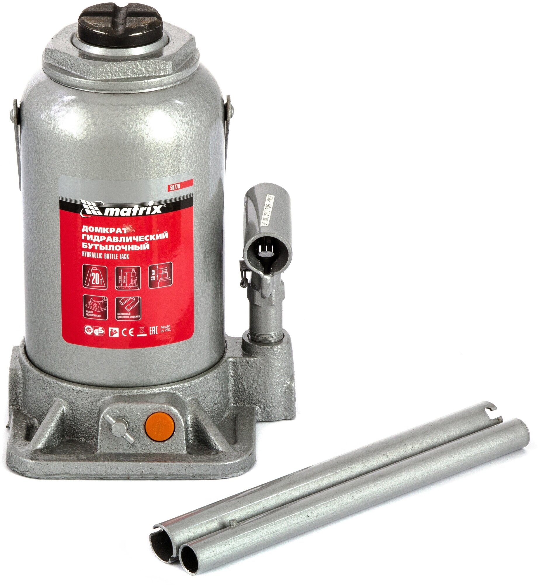 Лучшие цены. Гидравлический бутылочный домкрат Matrix 50778 поднимает грузы весом до 20 т на высоту 244-449 мм и может использоваться в гараже, на станции ТО или строительной площадке. Встроенный магнитный уловитель собирает металлическую стружку, образующуюся в процессе работы, что защищает домкрат от преждевременного износа. Преимущества Защита от перегрузок — благодаря клапану безопасности домкрат не поднимает грузы массой более 20 т. Магазины в вашем городе.
