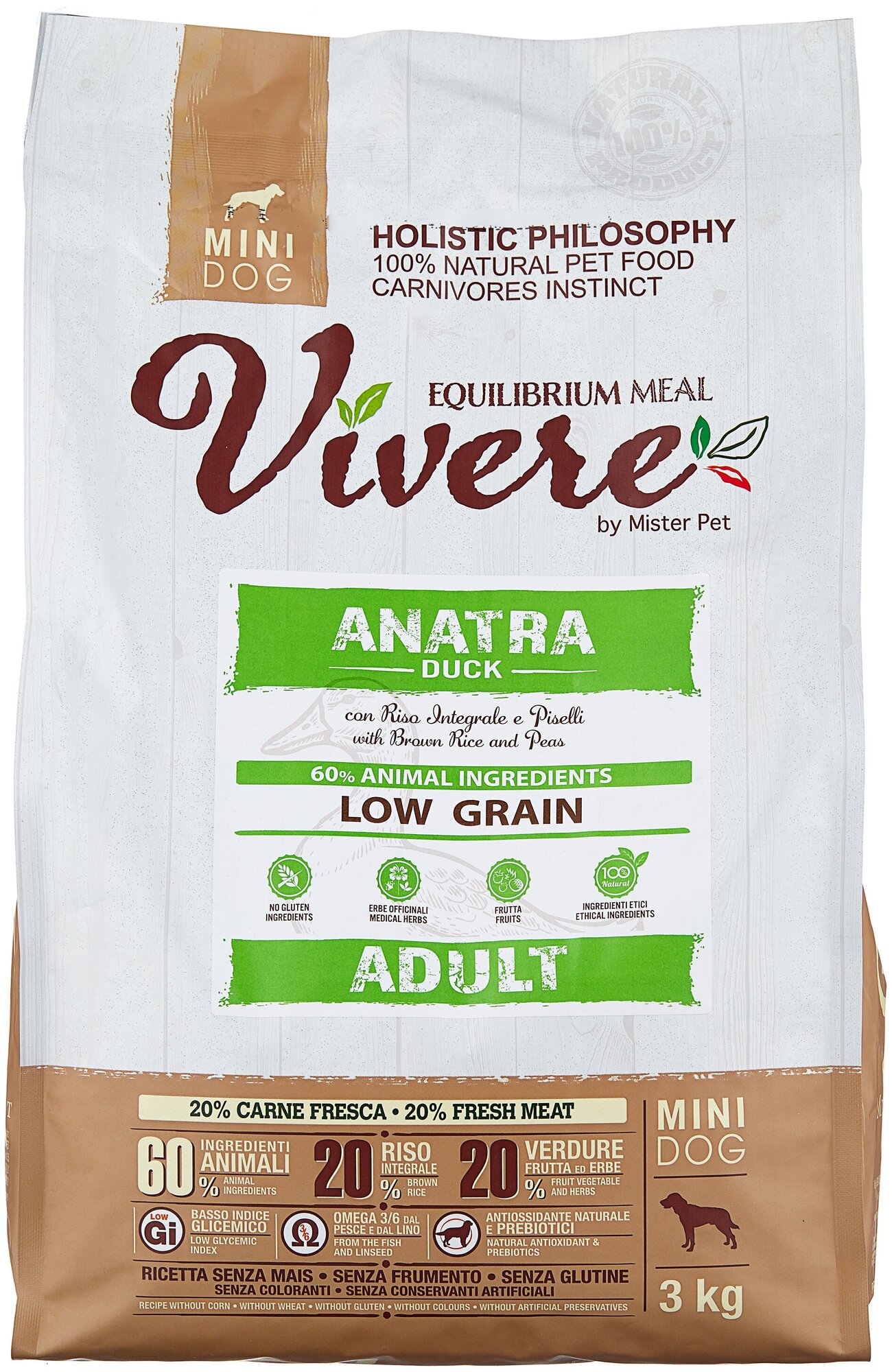 VIVERE LOW GRAIN ADULT MINI DUCK низкозерновой для взрослых собак маленьких пород с уткой (3 кг)