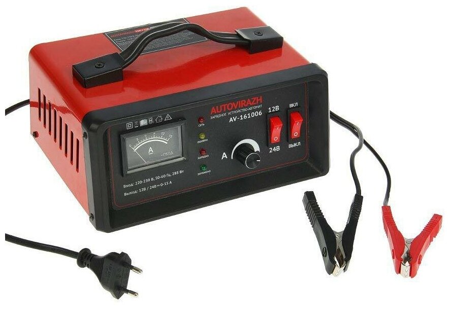 AUTOVIRAZH AV-161006 Зарядное устройство для АКБ (автомат, 0-15А, до 180 Ач,12/24В, стрелочн.индик.)