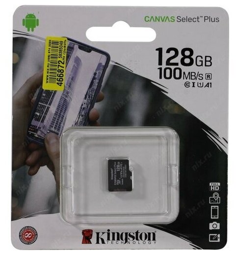 Карта памяти microSDXC Kingston Canvas Select Plus, 128 Гб, UHS-I Class 10 U1 A1 (SDCS2/128GBSP) RU 2 320 ₽ Подробнее