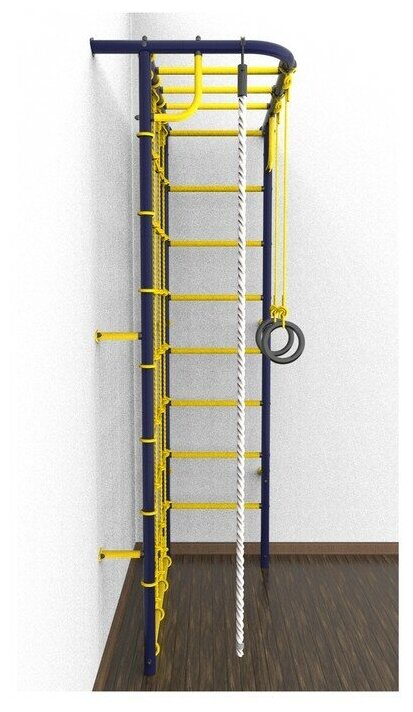 Лучшие цены. Возраст : От 3 лет; Maксимальная нагрузка, кг : 100; Глубина комплекса, мм : 700; Ширина комплекса, мм : 1150; Тип крепления : К стене; Комплектация : Канат; Комплектация : Рукоход; Комплектация : Сетка; Комплектация : Шведская стенка; Комплектация : Комплекс; Комплектация : Кольца; Высота комплекса, мм : 2170; Тип ступеней : С покрытием; Тип ступеней : Массажные; Состав : Металл. Магазины в вашем городе.