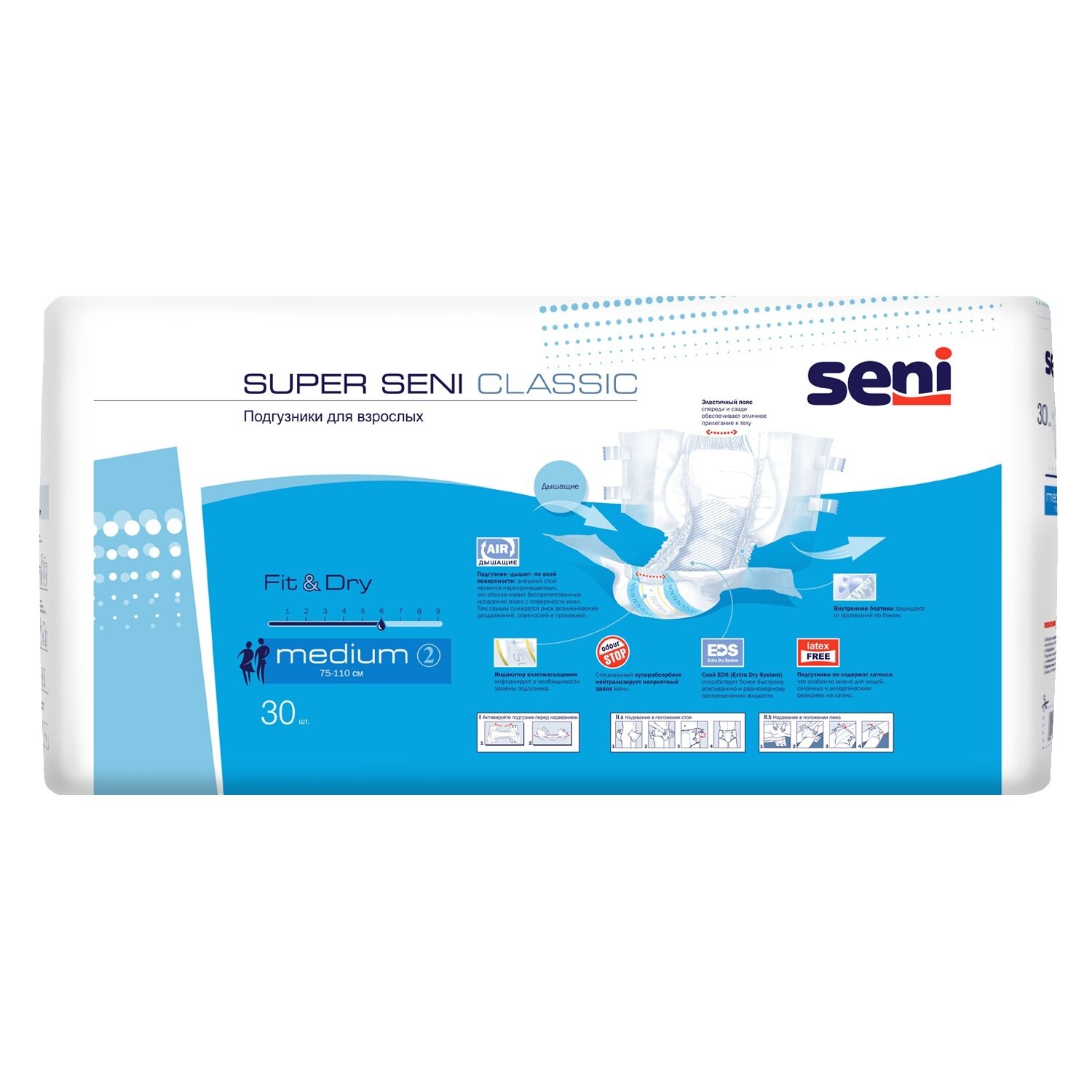 Seni Подгузники для взрослых Super Classic, 75-110 см., M (30 шт.)