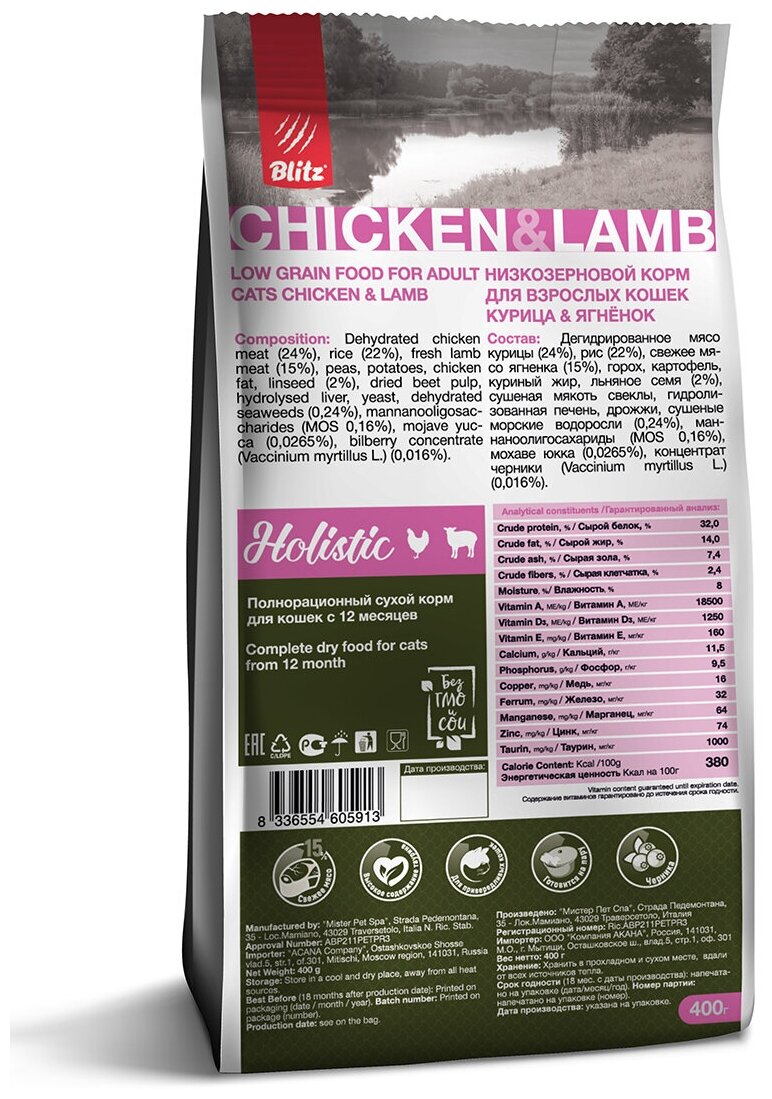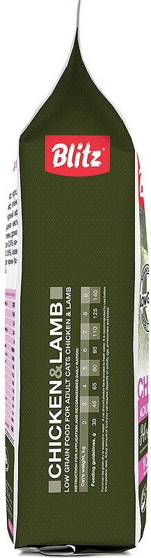 Лучшие цены. Blitz Holistic Chicken & Lamb Cat All Breeds (Low Grain) Низкозерновой сухой корм «Блиц Холистик» курица И ягненок специально разработан для взрослых кошек, отличающихся нежным желудком и привередливых в еде. Основу корма составляют диетическое куриное мясо и свежая ягнятина — они прекрасно усваиваются, содержат все необходимые кошкам аминокислоты и, также как и гидролизованная печень, нравятся по вкусу большинству животных. Магазины в вашем городе.