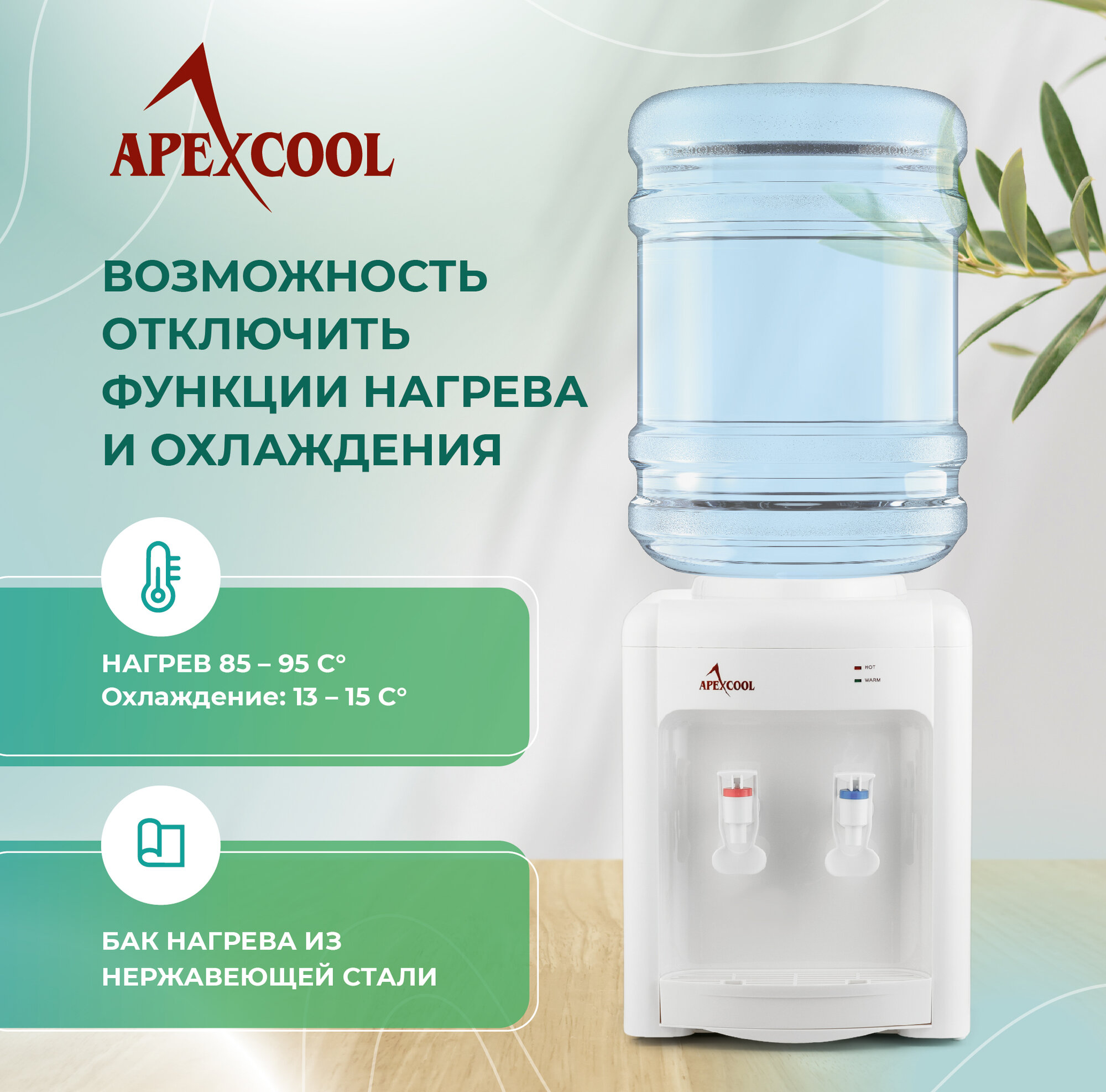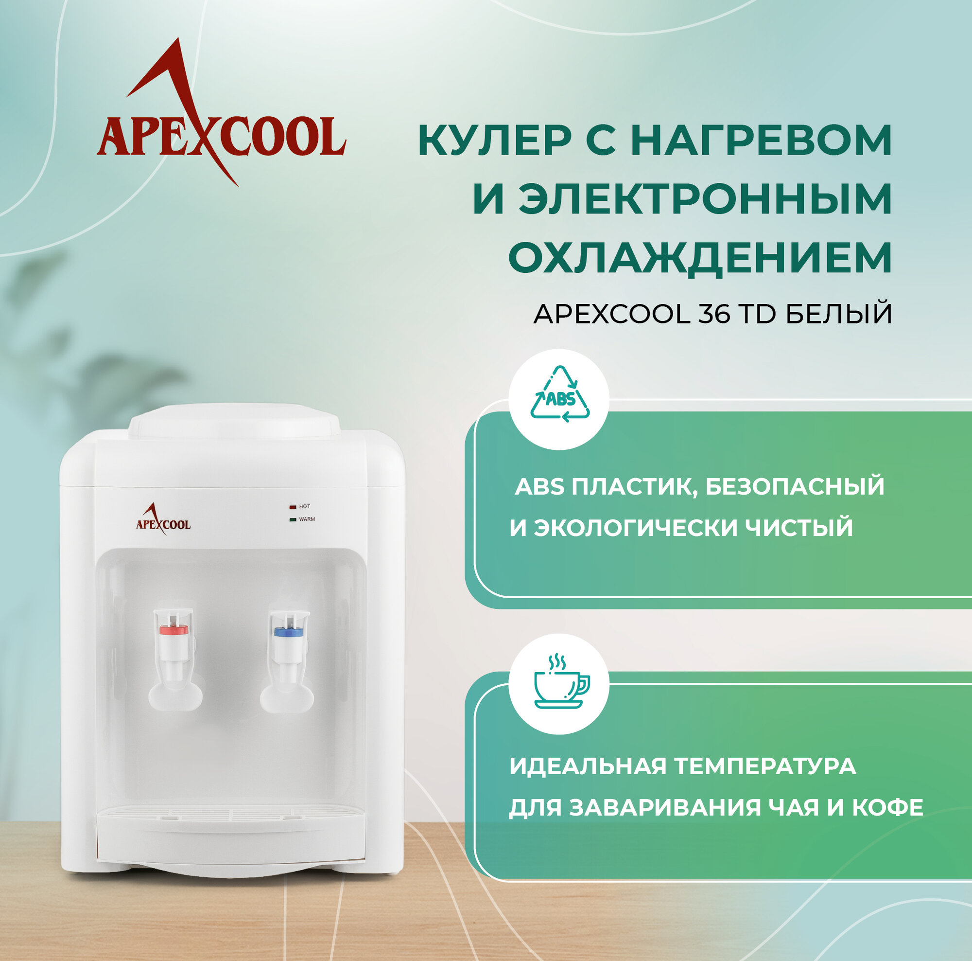 Кулер для воды Кулер для воды настольный APEXCOOL 36TD белый