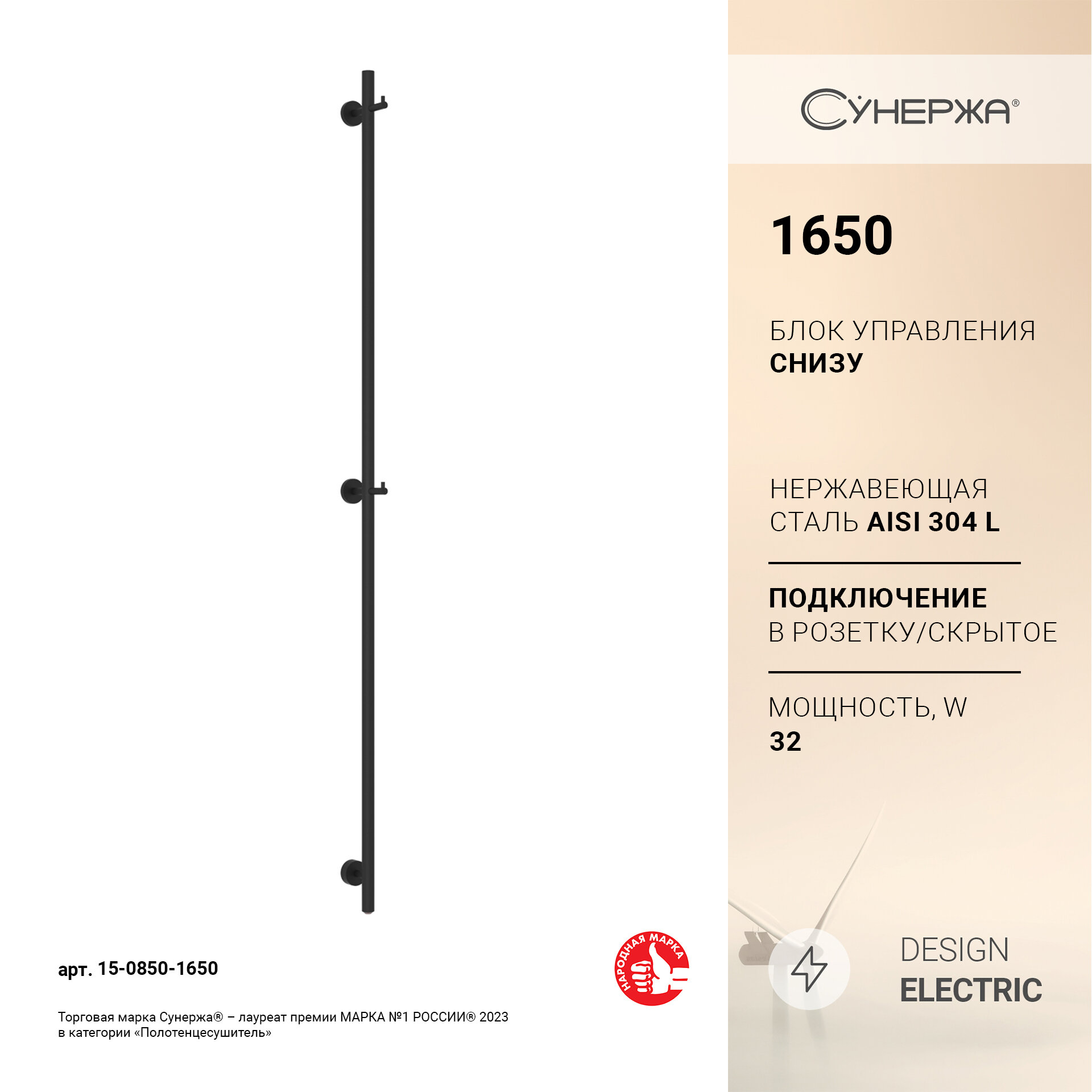 Полотенцесушитель электрический "СУНЕРЖА" аскет 1650 / Матовый чёрный