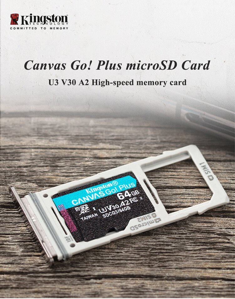 Карта памяти Kingston CANVAS Go! Plus - SDCG3/128GB - microSDXC UHS-I, U3, V30, A2 - 170/90МБ/с без адаптера