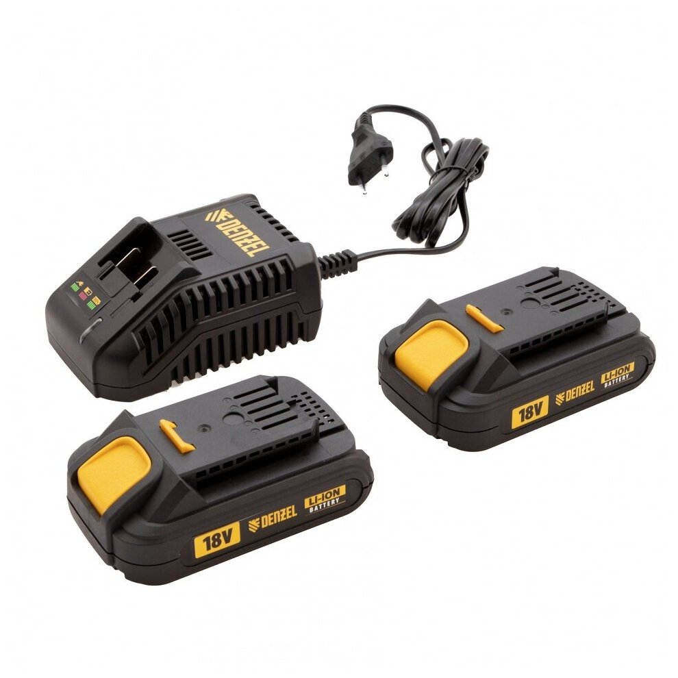 Аккумуляторная дрель-шуруповерт DENZEL CDL-IB-18-02, 18 В, Li-Ion, 2 x 1.5 Ач