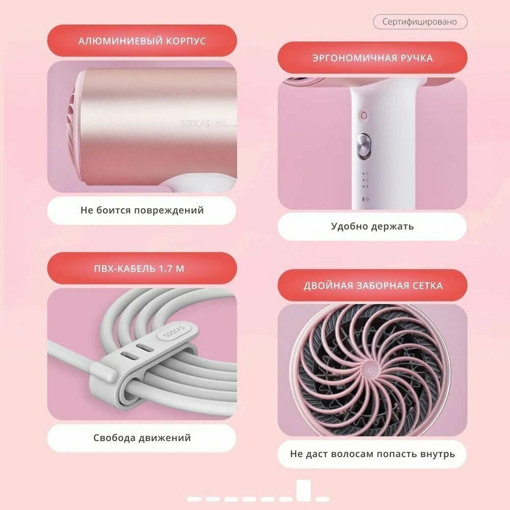 Фены и приборы для укладки Фен Soocas Фен Soocas Фен для волос Soocas H5, с насадкой диффузором CN, pink