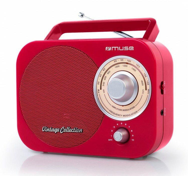 Лучшие цены. Габариты: 13х8х18 см. Вес: 0,63 кг. Питание: 230в/50гц. Функции: FM/MW радио, AUX in (line-in для MP3), питание от сети и от батареек (4 x 1.5 V “C”/R14/UM2). Мощность: 3 Вт. Материал корпуса: пластик. Цвет: красный. Гарантия: 12 месяцев. Производитель: Muse, Франция (страна бренда). Магазины в вашем городе.