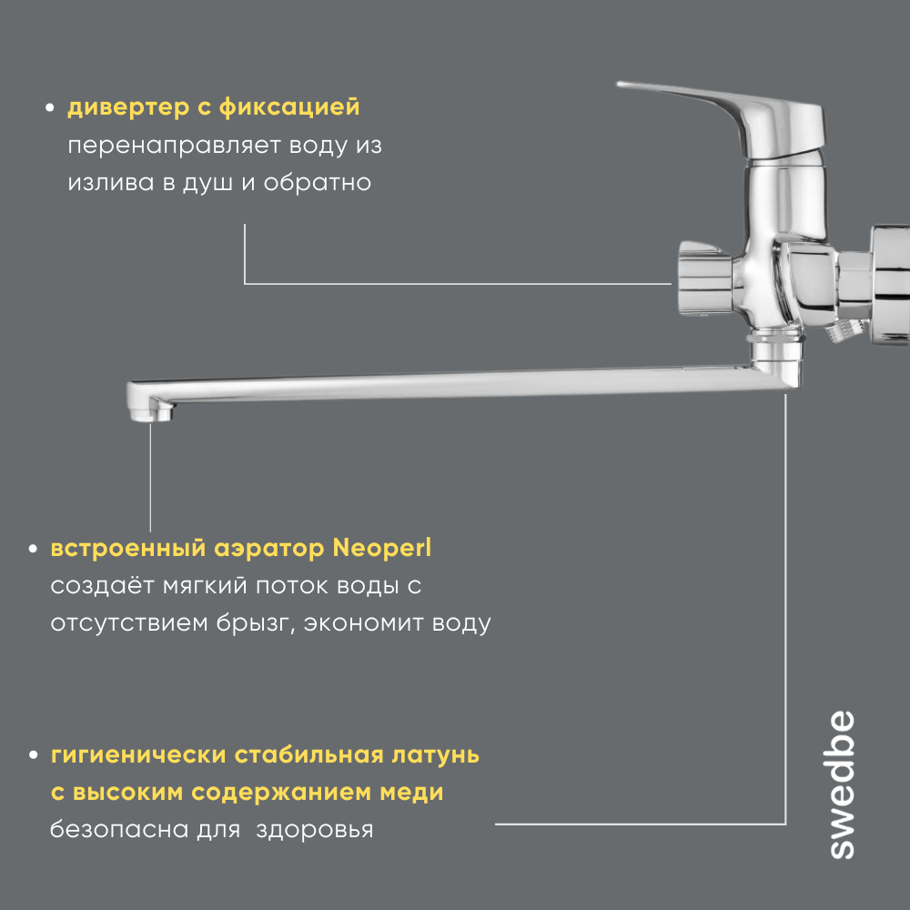 Смеситель для ванны и душа Swedbe Venado 1650 11 700 ₽ Подробнее