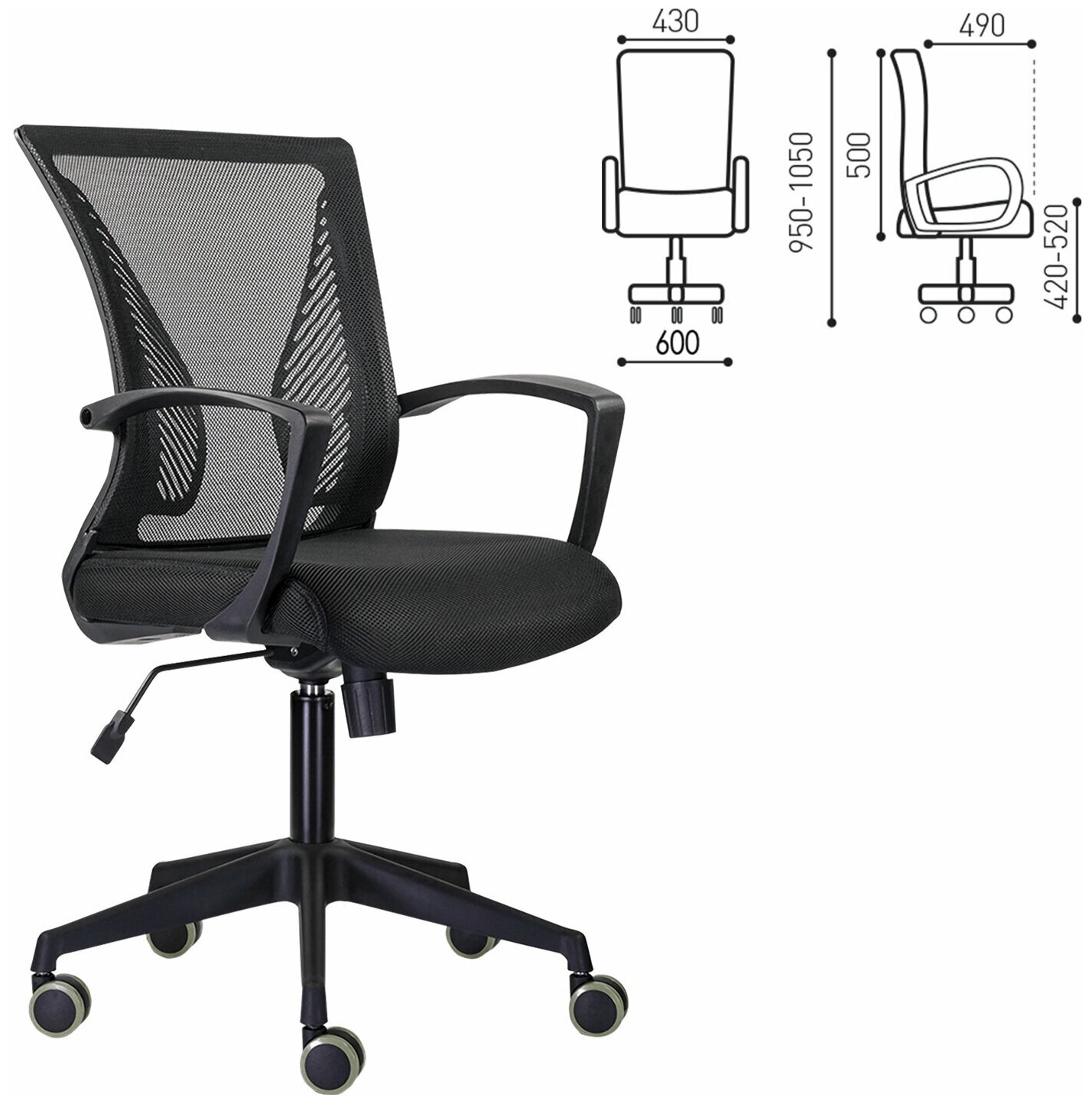 Кресло офисное BRABIX "Wings MG-309", пластик черный, сетка, черное, 532015