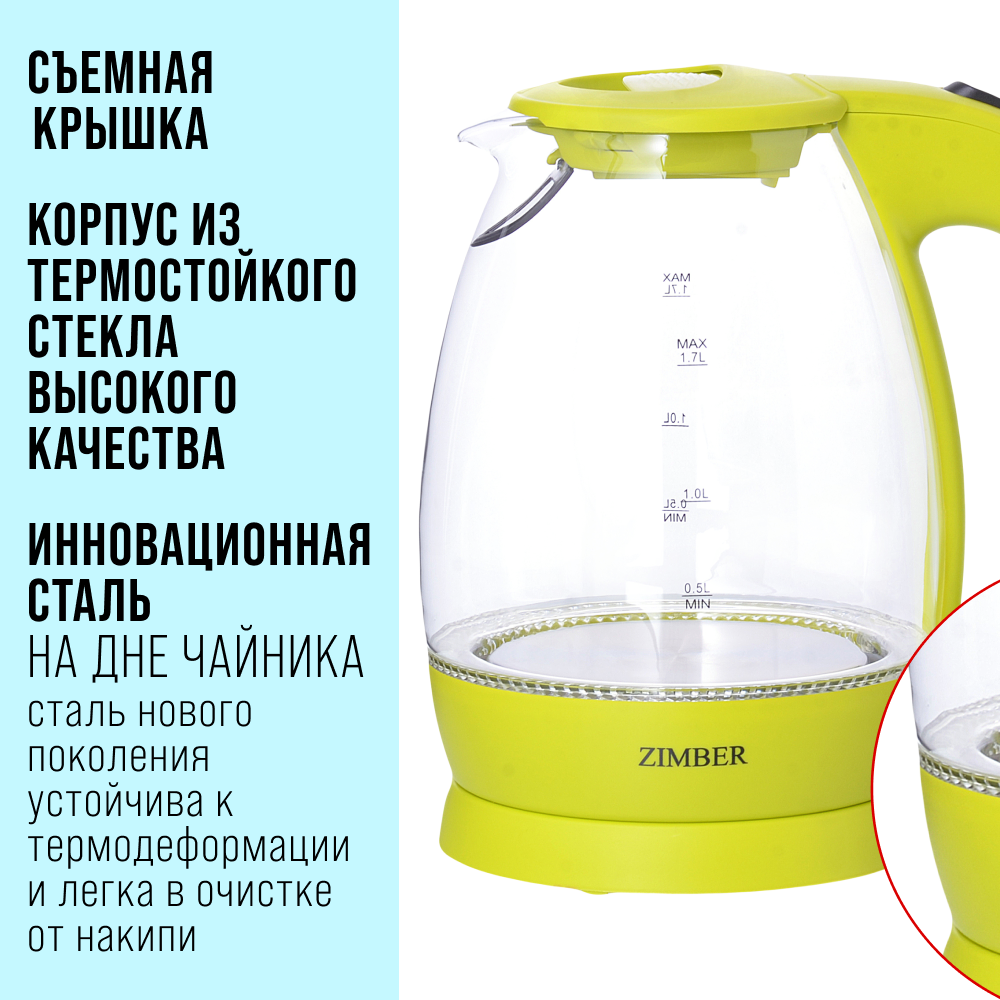 Электрочайник Электрический чайник стекло 1,7л 2200Вт Zi MBer 11178 KSMB-11178