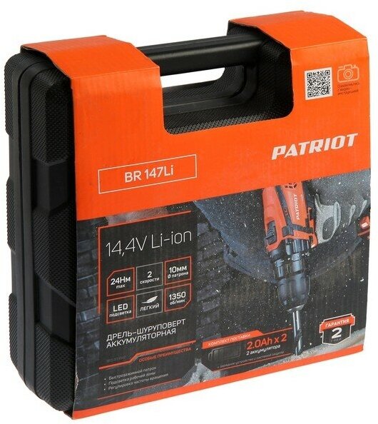Дрель-шуруповерт аккумуляторная 14,4V Li-Ion; 2,0 Ah; 2акк; 24Нм; кейс PATRIOT BR 147Li 180301147