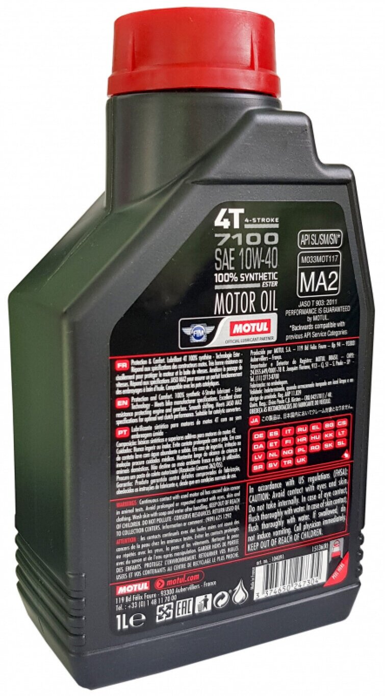 Масло для мотоциклов MOTUL 7100 4T (четырёхтактное), 10W40, синтетика, 1литр 104091/104202