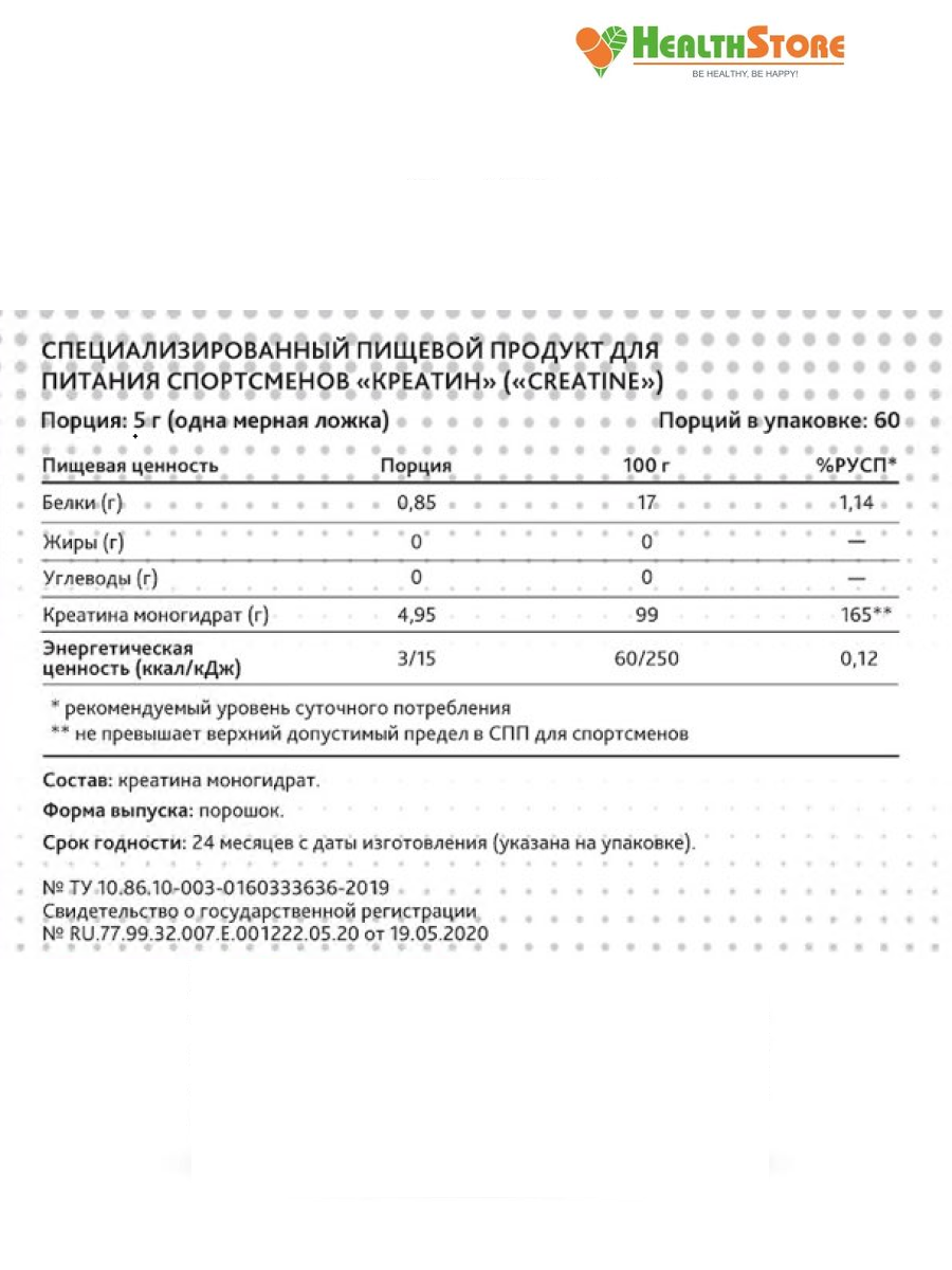 Креатин Креатин моногидрат Be Steel Nutrition 100% Creatine Monohydrate 300г (натуральный)