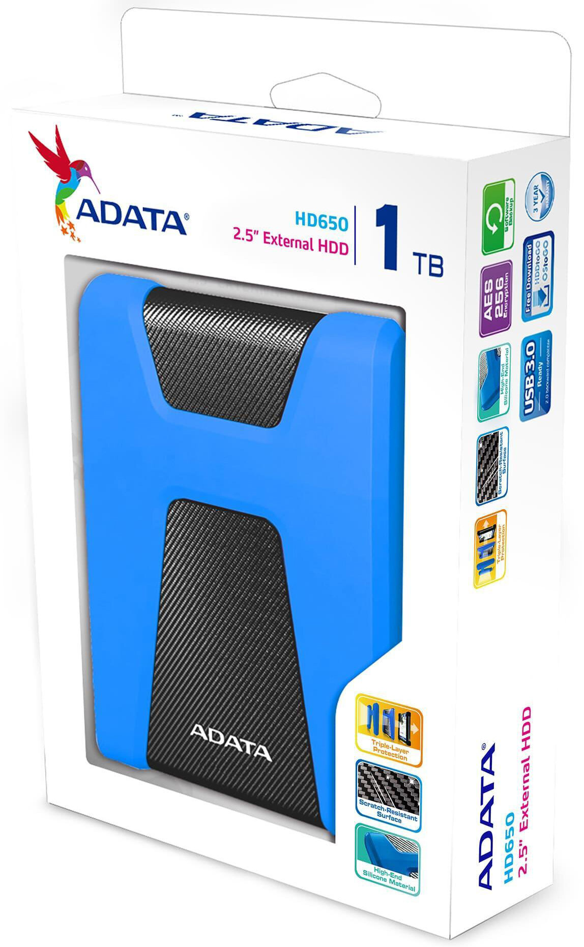 Внешний жесткий диск 2.5"" 1TB ADATA HD650 AHD650-1TU31-CBL USB 3.1, Blue, Retail {20}
