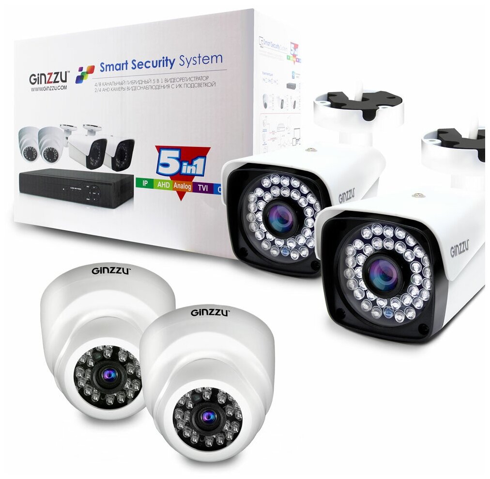 Готовый комплект видеонаблюдения Ginzzu HK-440N, 4ch, 1080N, HDMI,2ул+2куп кам 2.0Mp, IR30м