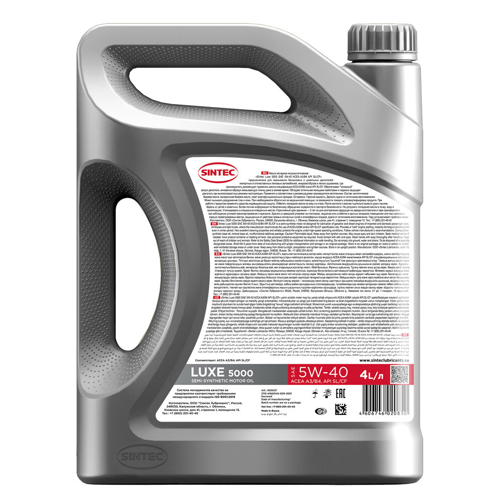 Полусинтетическое моторное масло SINTEC LUXE 5W-40, 4 л, 4 л