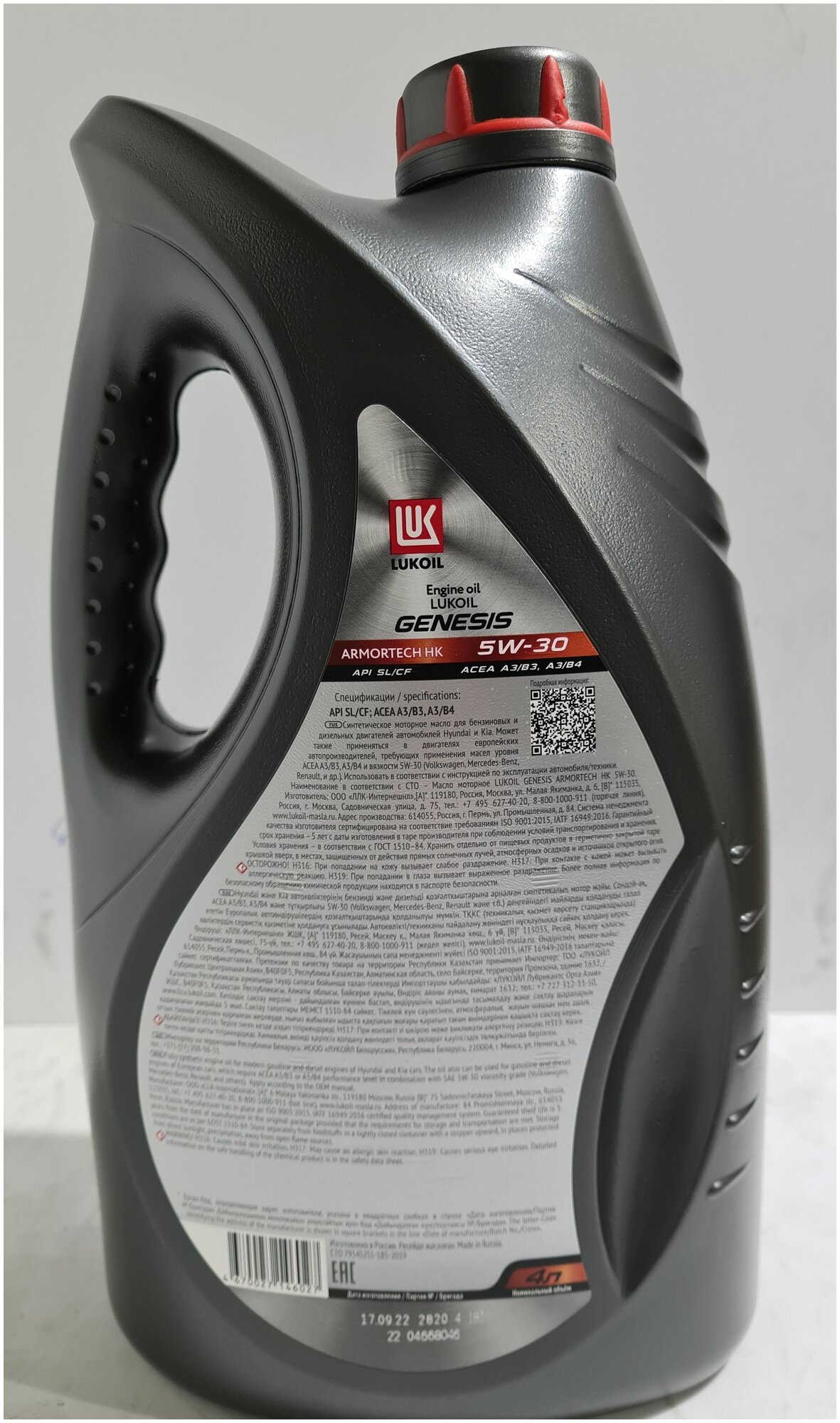 Масло моторное Лукойл Genesis Armortech 5w30 HK 4л синтетическое (для HUNDAI/KIA)