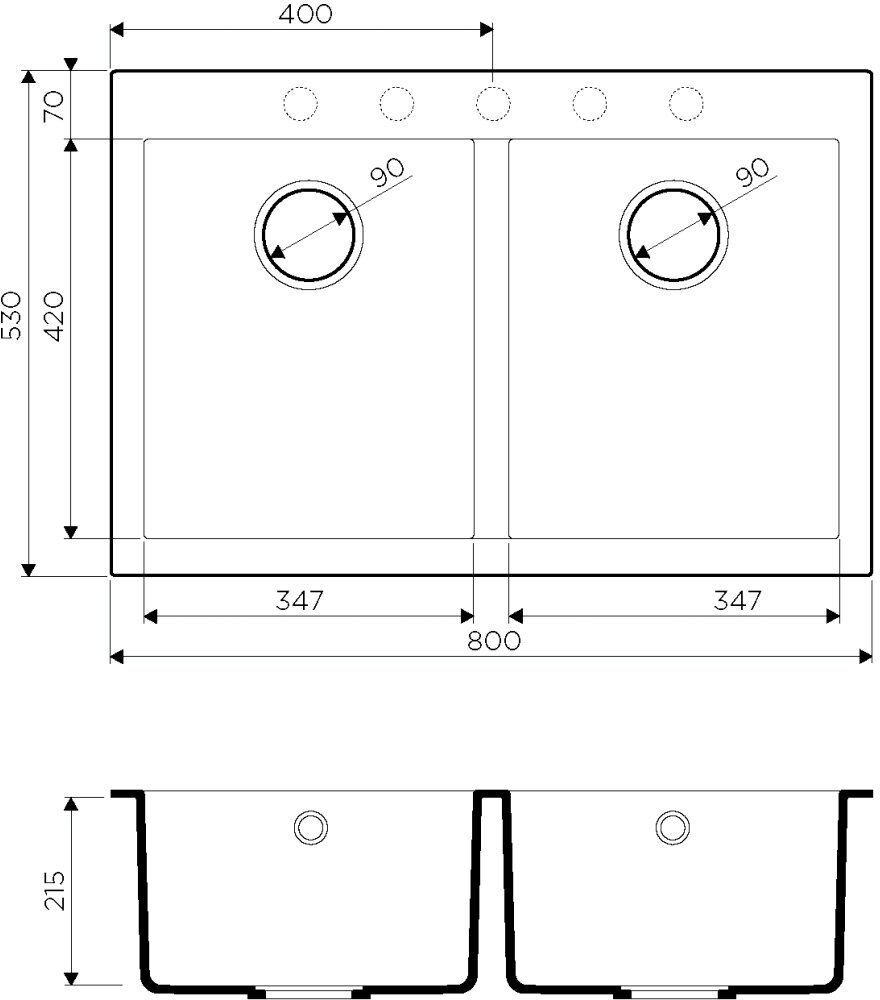 | Отверстие под смеситель | + |